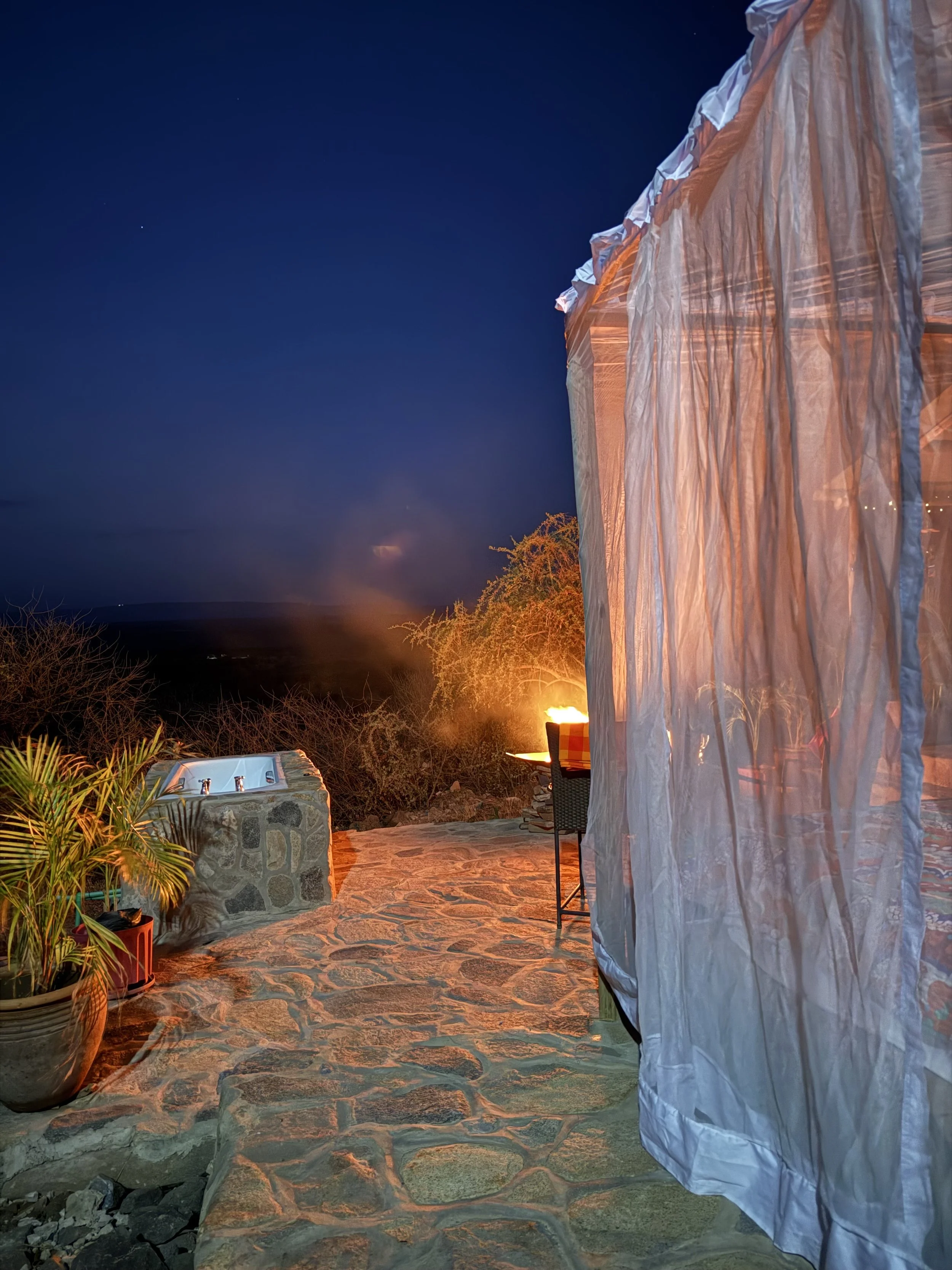 Star nights Magadi is the epitome of slow travel with the highlight of the cabin, is its star gazing bed, draped in sheer white curtains offering an unfiltered view of the vast African night sky.